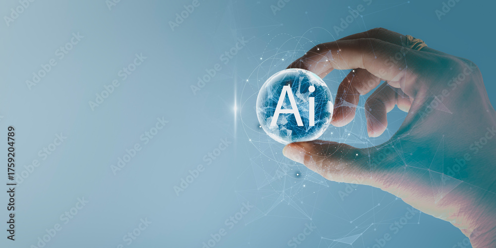 AI artificial intelligence technology. Hand holding global Ai connect future technology