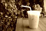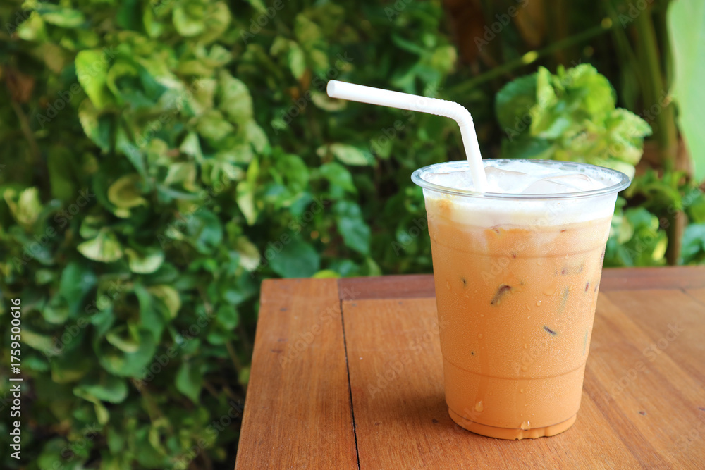 A Cup of Tasty Iced Thai Tea on Garden Table