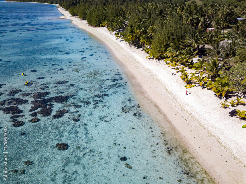 aerial view of sandy beach lagoon of polynesia Cook islands