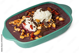 Photo of smoothie bowl taken with a high-resolution camera using the focus-stacking technique on a white background.