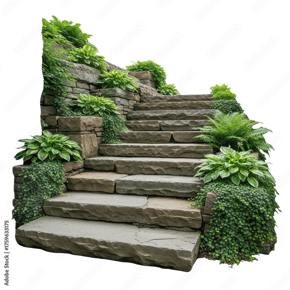 Oil paint of stone pathway and stairs isolated on white background, realistic artistic illustration showing textured stones and natural walkway symbolizing journey and progress