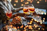 Glasses with aperol spritz seen during a friendly party of a celebration.