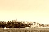 View over harbor and old town of Vrsar, Croatia, from the sea