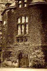 Red and green ivy on a wall of a bulding in Stockholm, Sweden