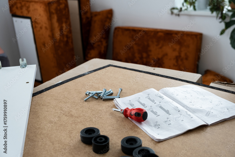 assembling modern furniture at home, assembling sofa in a stylish apartment. a room during the relocation and assembly of furniture, sofas Real-life moment of assembling furniture, modern life. moving