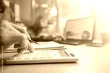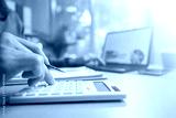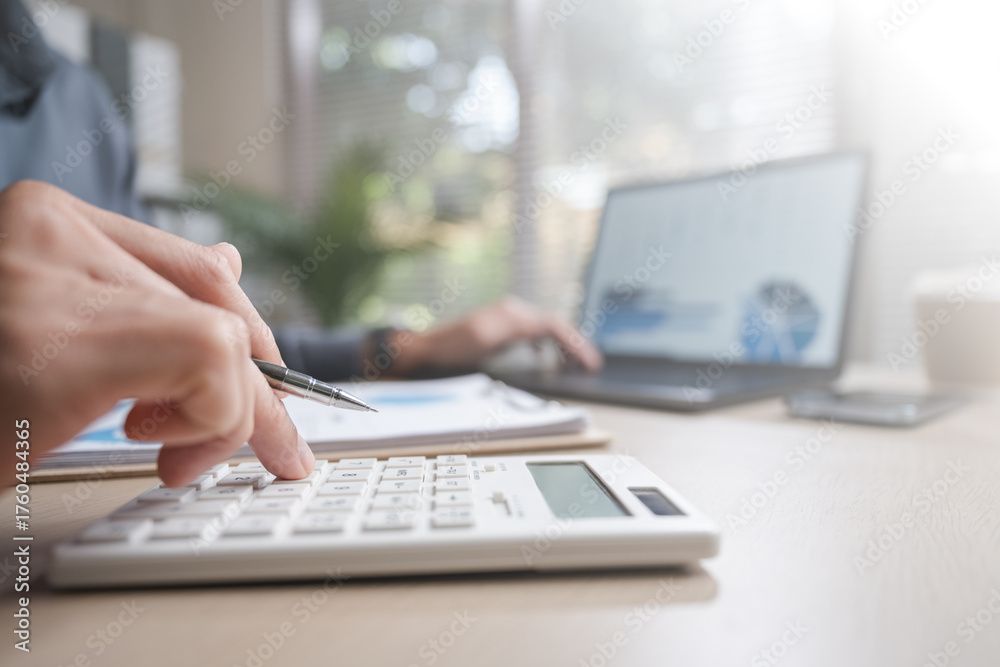 refund, pending, payment, processing, finance, Person reviewing payment transaction and refund status using calculator and laptop, representing finance management, processing, and digital billing.