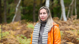 Stylish Slavic Woman in Cozy Fall Fashion Looking Directly at the Camera