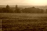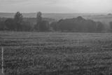 Witness the stunning beauty of a sunrise illuminating serene fields adorned with lush greenery
