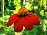 Urban Turtle Red Mexican Sunflower-Tithonia flower. Vivid Red Tithonia.Bright orange flowers bloom in the garden, Orange flowers in the garden, blurred green background.