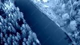 Abstract Top-Down Aerial View of a River and Pine Forest