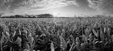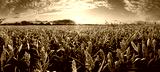 Sorghum field at dramatic yellow sunset, Agriculture landscape