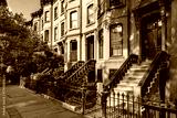 Row of historic brownstone townhouses in Park Slope Historic District, Brooklyn. Classic residential architecture in New York City, USA