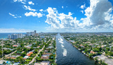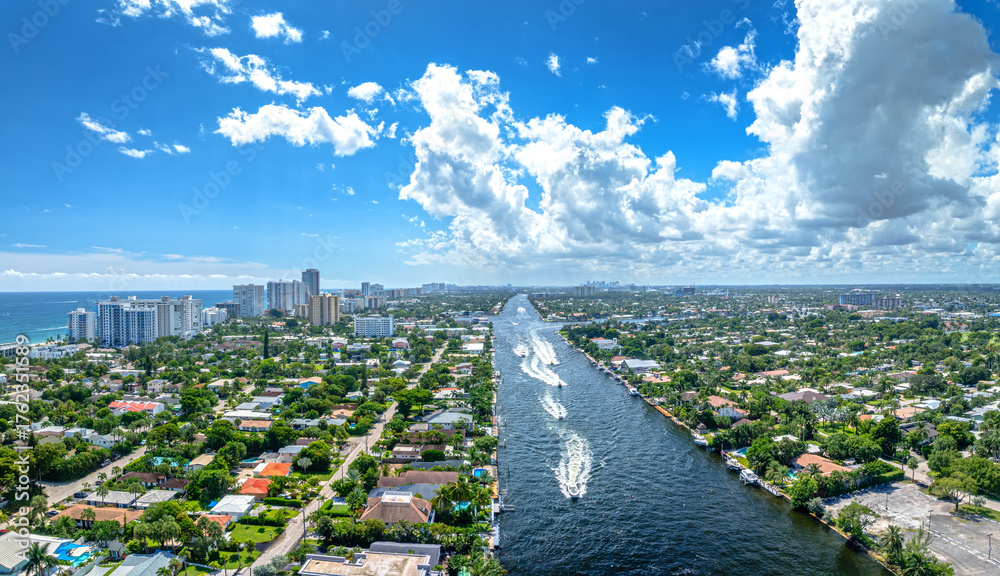 panoramic aerial drone view of Fort Lauderdale, Florida with city and intracoastal