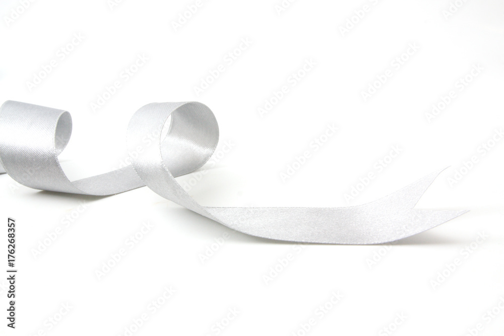 silver ribbon bow in bright silver white grey color isolated