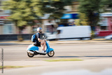 Motion Blurred scooter moving past the camera