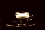 Taza de espresso con crema sobre fondo negro. Taza transparente con café espresso recién preparado, mostrando una capa de crema dorada sobre fondo negro. Fotografía minimalista y elegante.