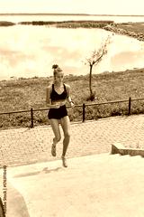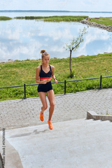 Woman in sportswear exercising on the stairs