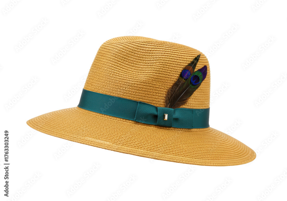 Isolated straw hat with feather decoration, perfect for summer vacations and sunny weather