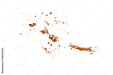 Flying cookie crumbs, crunchy biscuit pieces explosion with brown crispy texture for dessert design, bakery ingredient concept, sweet snack decoration, and food background element
