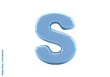 Isolated blue letter S, rounded and glossy font, 3D rendering of alphabet character