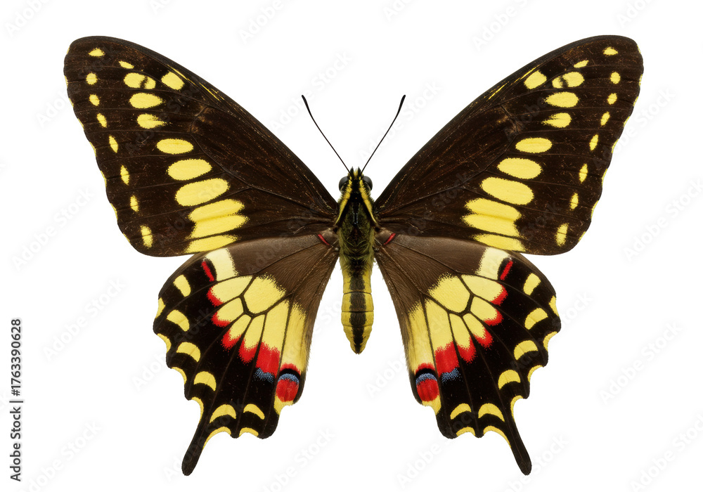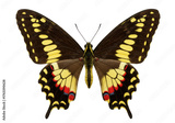 Isolated Butterfly insect spreading wings, detailed Papilio machaon yellow black pattern bug