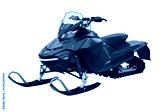 Isolated, blue snowmobile, winter vehicle with two skis and a caterpillar track, snow travel