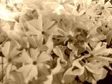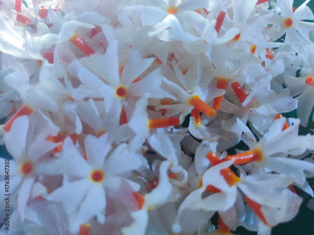 Beautiful Night Jasmine (Parijat) Flowers on Green Leaf in Natural Sunlight