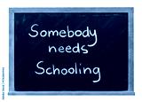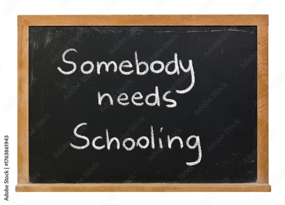 Somebody needs schooling written in white chalk on a black chalkboard isolated in a wooden frame