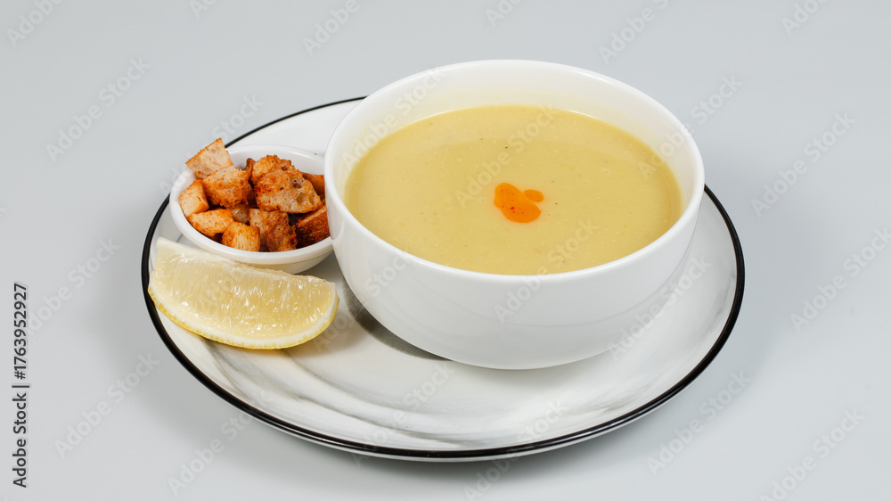 Lentil soup bowl isolated view
