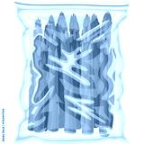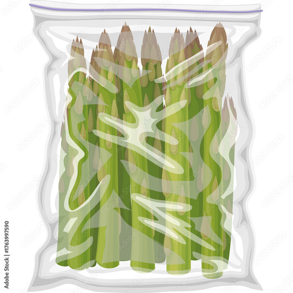 Fresh Asparagus Bundles Sealed in Transparent Plastic Bag for Storage and Preservation