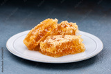 清潔感ある白い皿に盛ったはつみつがあふれる巣蜜