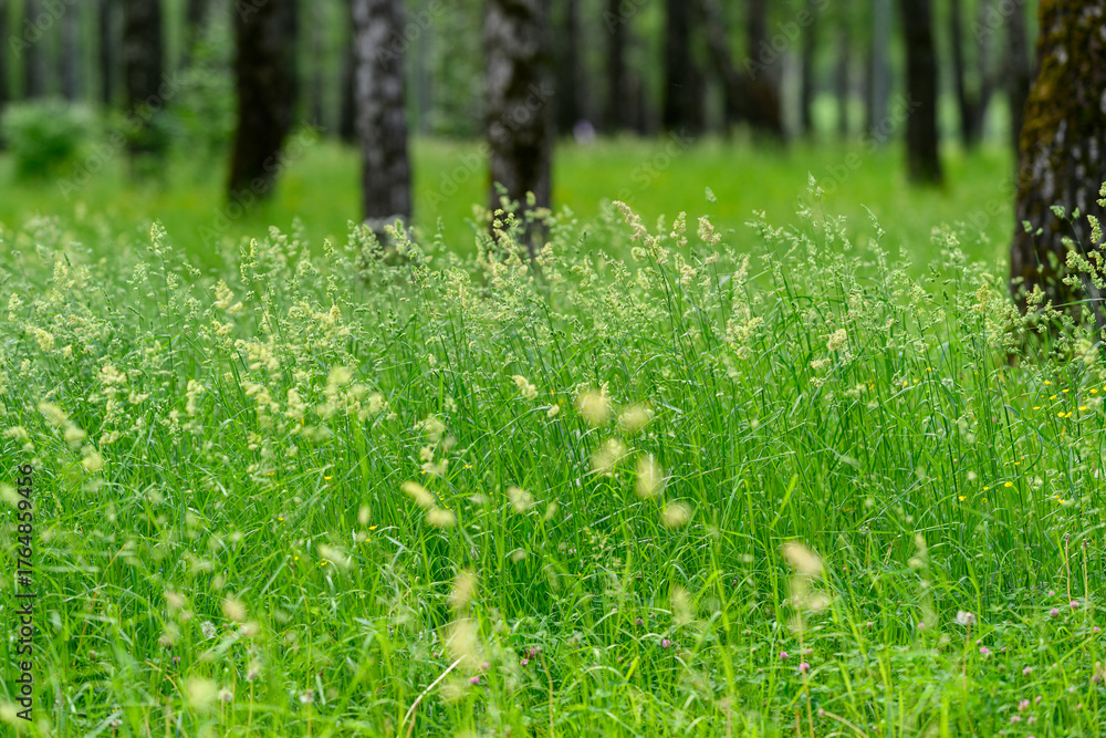 A Beautiful Lush Green Grass Field Encompassed by Various Trees and Nature Environments