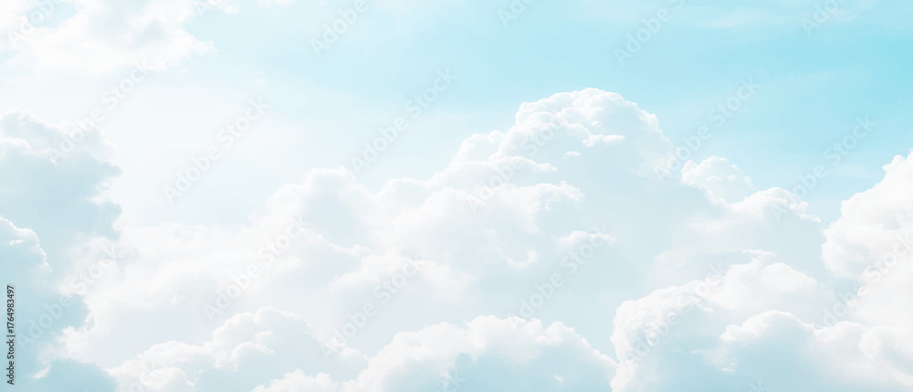 White cumulus clouds formation in blue sky. Beautiful blue sky and clouds natural background. White fluffy clouds on blue sky in summer. sunny heaven landscape, bright cloudy sky view from airplane,
