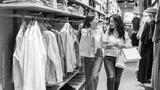 Happy Asian woman family mother and daughter shopping together at department store. Senior mom and adult child choosing and buying clothes at clothing shop. Mother's day and consumerism concept.