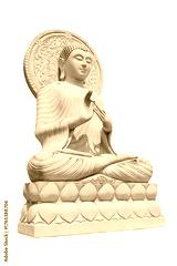 Buddha statue in meditation posture stucco carvings decorated at ancient pagoda of buddhism in Thailand