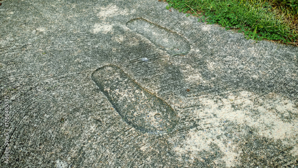 Permanent Footprints Embossed in Aged Concrete: Abstract Concept of Historical Mark, Legacy, and Lasting Impression
