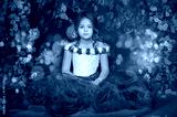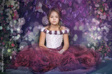 Girl in a purple dress on a floral background