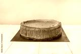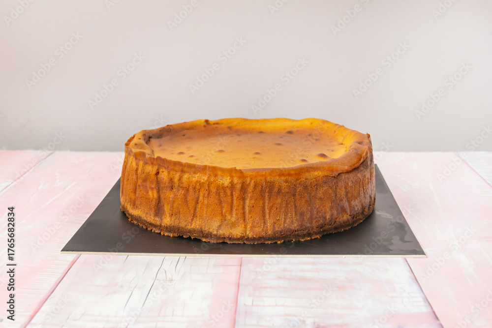 Coffee cheesecake with an intense espresso flavor, decorated with chocolate-covered coffee beans and a drizzle of liquid caramel