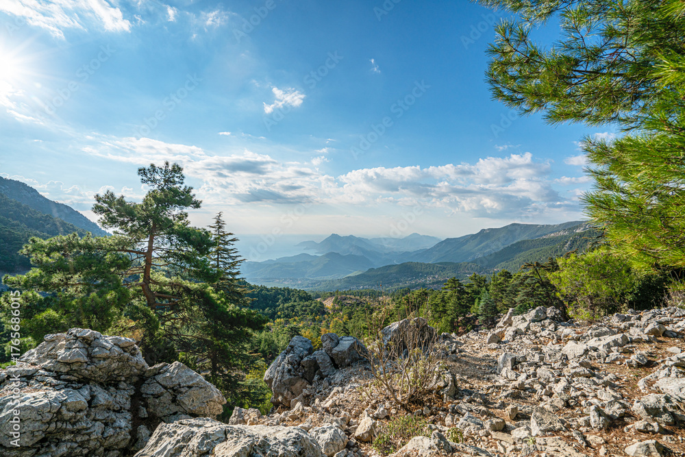 The scenic views of the Tahtalı Montain (Tahtalı Dağı), also known as Lycian Olympus with a height of 2365 meters near Kemer, in Antalya, Turkey.