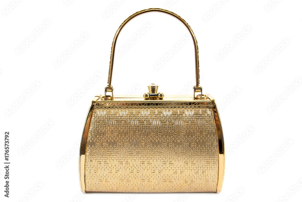 Woman gold handbag isolated on white background.Gold handbag isolated