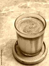 delicious layered coffee drink served in clear glass, showcasing rich espresso and creamy milk on wooden coaster. Perfect for coffee lovers
