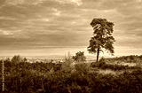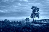 A lone scots pine stands in the heath land on the outskirts of 500 acre wood Ashdown forest on the high weald east Sussex, south east England UK