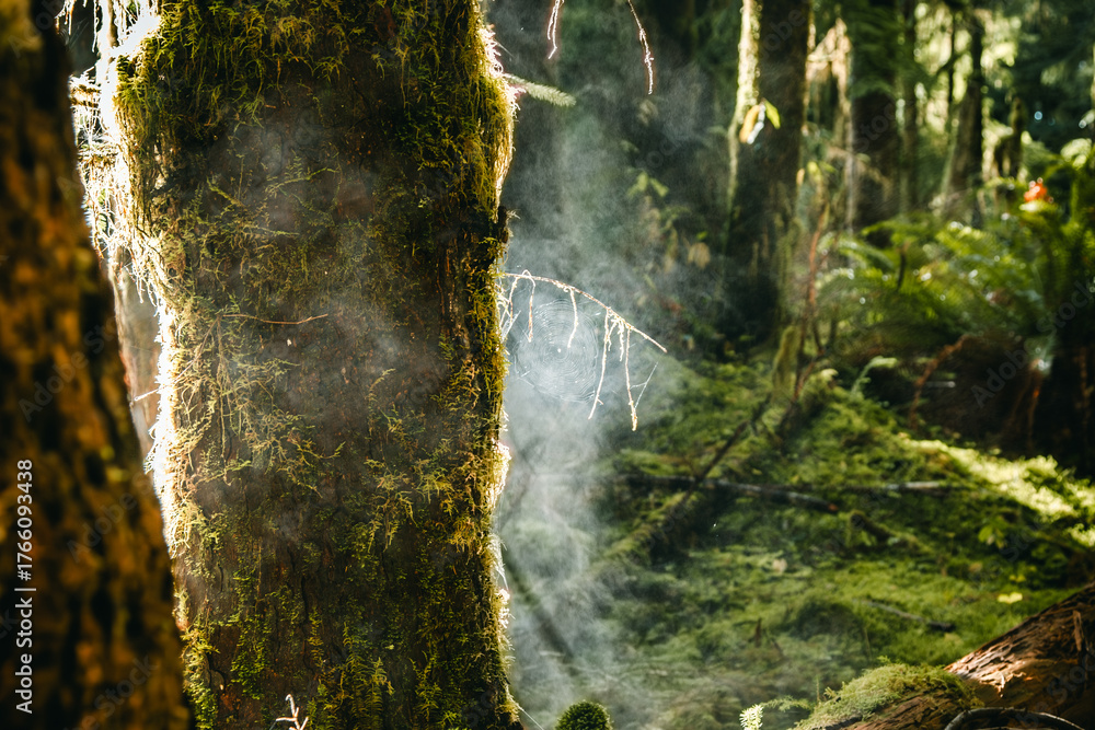 Sunbeams Filtering Through Mossy Trees in Hoh Rainforest