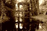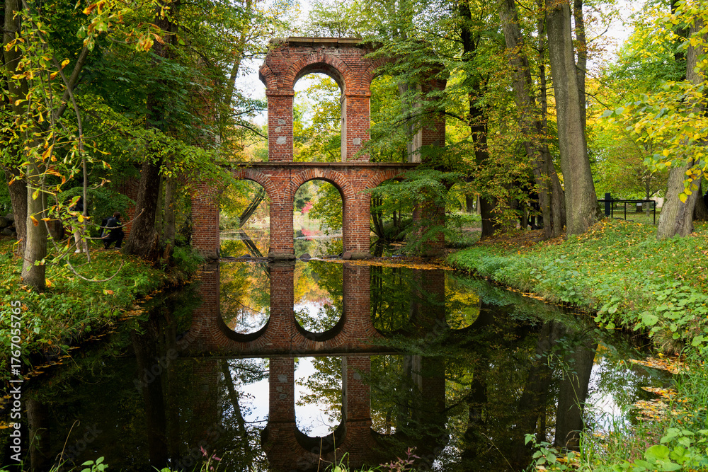 Ruins of a Brick Bridge in Autumn Park