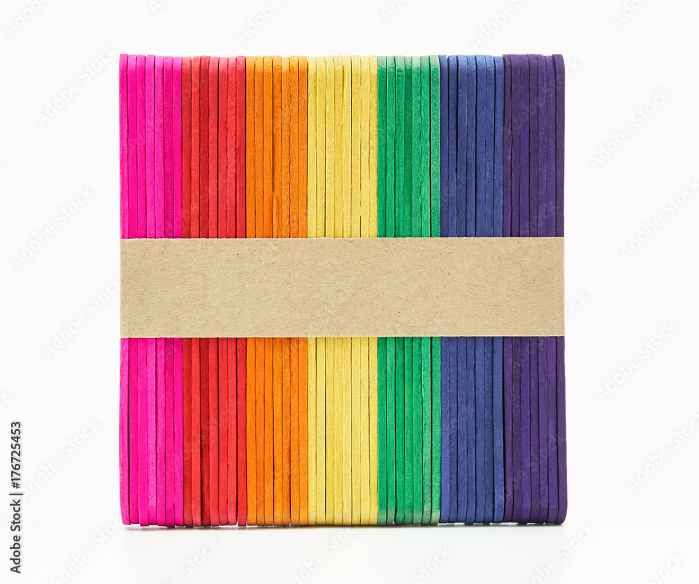 Ice cream stick, Multi colors for beauty in a row on white background.