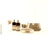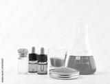 Ingredients of skin care products. the glass, Blank label package for mockup on white background. The concept of natural beauty products.