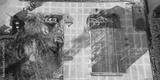 Aerial view wood frame house under construction with foundation in Humble, Texas, USA. New stick built framing one floor commercial building. Excavator, bulldozer and pile beams, logs, sand. Panorama
