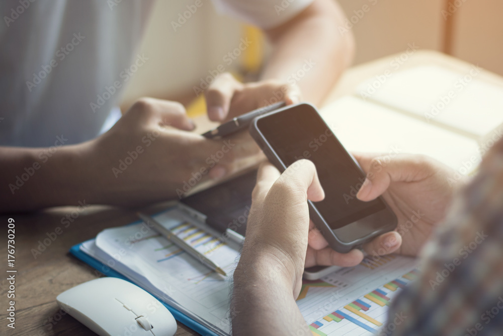 group of man use phone to contact and connect about business, concept as internet , and social network.