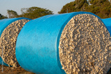 Freshly Harvested Cotton Bales Wrapped in Blue Plastic – Agricultural Field Scene