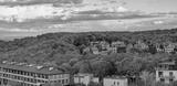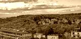 Autumn panorama of the outskirts of the city at sunset